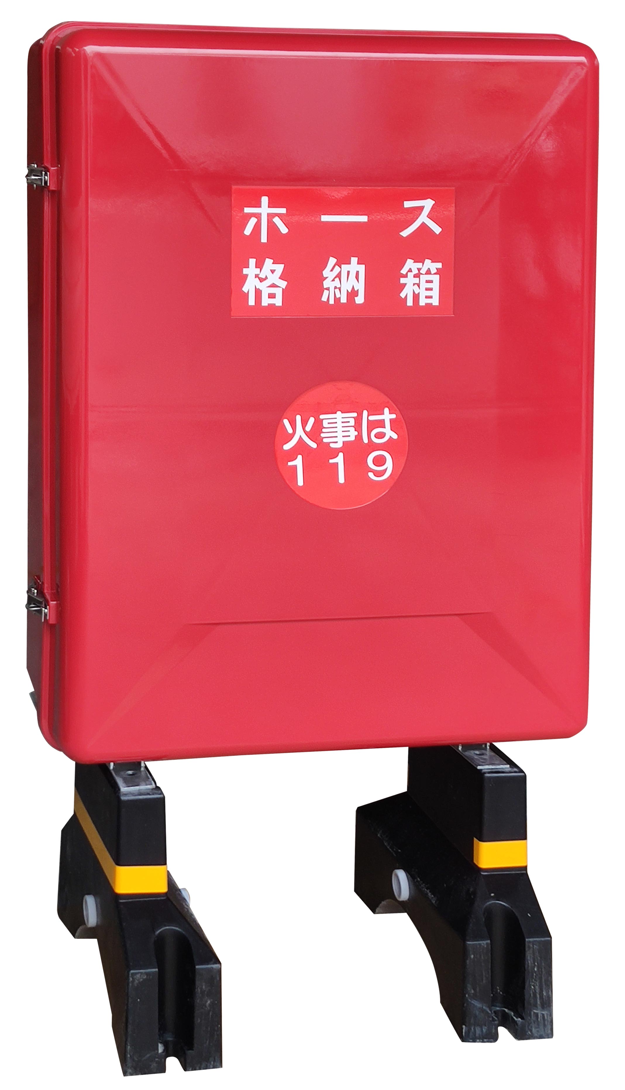 腐食しにくいFRP(繊維強化プラスチック)製のH850×W600×D270mmホース格納箱です。メラミン樹脂焼付塗装仕上げを採用しているため樹脂製格納箱によくみられる短期での変色は起こりません。アングル架台付き・コンクリート架台付きなどのバリエーションがございます。(※アングル架台、コンクリート架台セットは別々の梱包で発送いたします。設置が簡単な樹脂被覆でビスが付属されておりますので、設置・組立はお客様にてご対応をお願いいたします。)