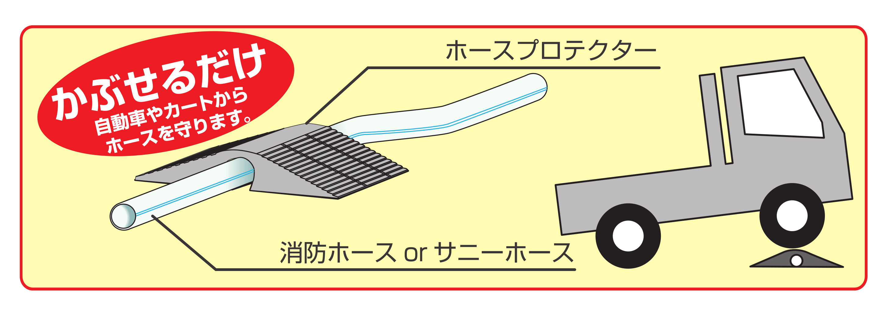 車両が通行する場所に設置されたホースを保護するゴム製のカバーです。